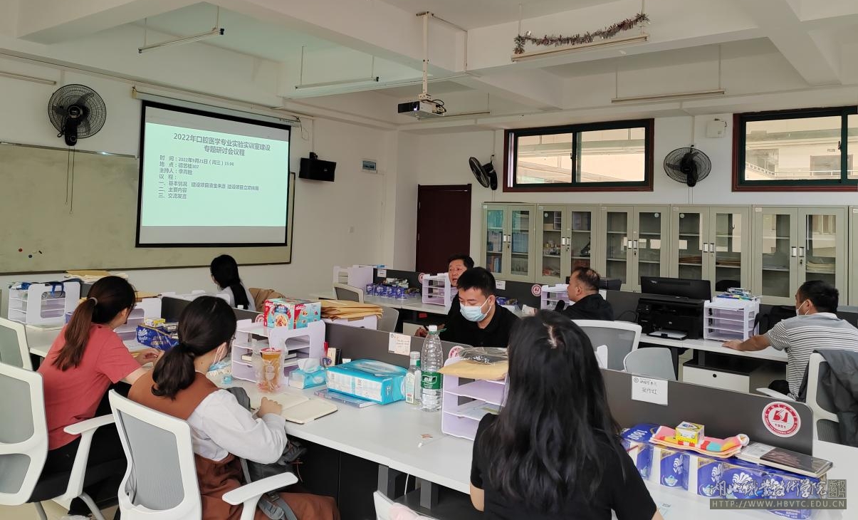 2022年9月21日下午,口腔医学院在德艺楼307举行2022口腔医学专业实验实训室建设专题研讨会。口腔医学院副院长李周胜、副院长肖严、专业带头人谢宏新及口腔临床教研室全体教师参加本次研讨。