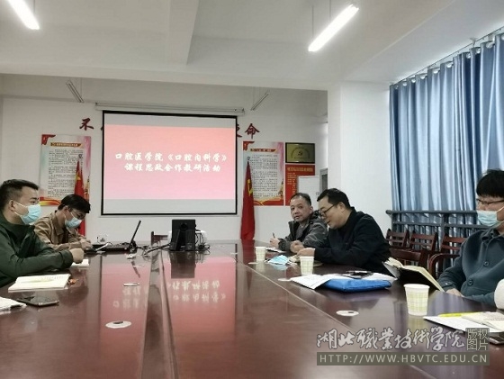 为建立健全课程思政建设长效机制,落实《湖北职业技术学院“三全育人”综合改革建设方案》要求,深入推进课程思政建设。11月24日下午,口腔医学院在德艺楼202会议室举行课程思政合作教研活动。活动由口腔医学院副院长肖严主持,口腔医学院党总支书记孙国运、马克思主义学院教师彭雅琴和王超,口腔医学院全体专任教师及辅导员代表、学校课程思政教学研究中心专家王洪涛教授等参加了此次活动。