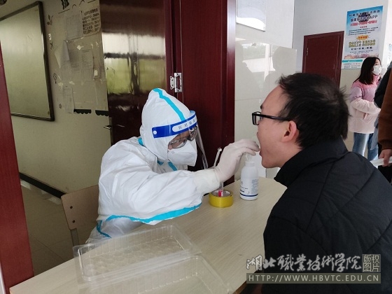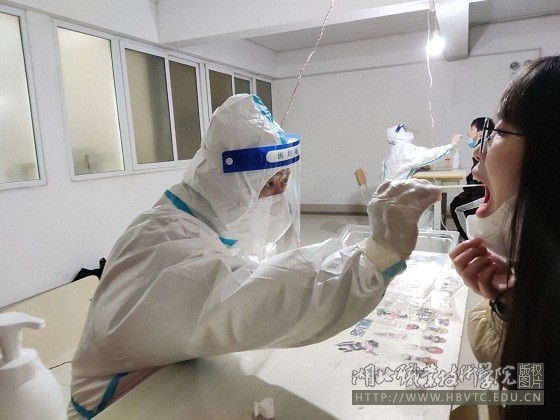 根据孝南区防控指挥部《关于进一步做好孝南防区学校和幼儿园核酸检测工作的通知》要求,完善校地协同机制,进一步提高校园核酸检测工作效率,湖北职业技术学院校领导审时度势,特邀湖北航天医院感控办医护人员开展了“新冠状病毒核酸标本采集技术”的专题培训,口腔医学院选派专职教师和行管人员共10人参加了此次培训,组成了一支核酸检测采样队伍。面对突发疫情,口腔医学院的老师们肩扛责任,挺身而出,义无反顾穿上防护服,戴上防护面罩,站上采样台,为口腔医学院在校师生进行核酸采样,临床专业教研室主任叶芬一天的采样人数达到600余人。她们严格执行咽拭子操作流程,坚决杜绝交叉感染,出色完成核酸采样工作,实现了自我挑战和技能磨炼。