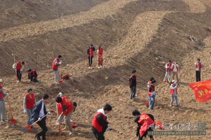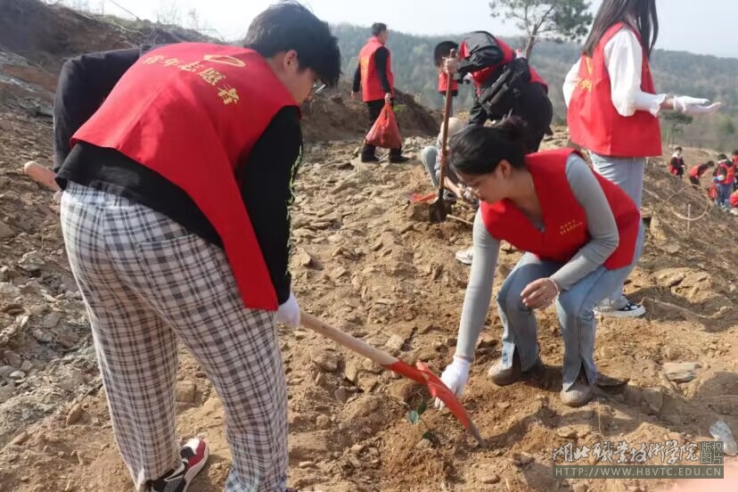 植树现场,师生身着“志愿者”红马褂,三两一组,分工协作,按照茶树种植株距挥锄挖坑,扶植树苗、培实新土、堆起围堰、提水浇灌,每一道工序都做得认真细致,到处都是劳动的青春身影。新栽种的油茶苗亭亭玉立,给荒山披上一片新绿,也为万冲村乡村振兴种下了希望的种子。