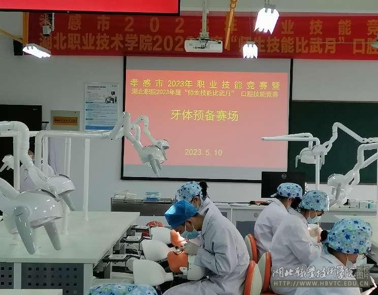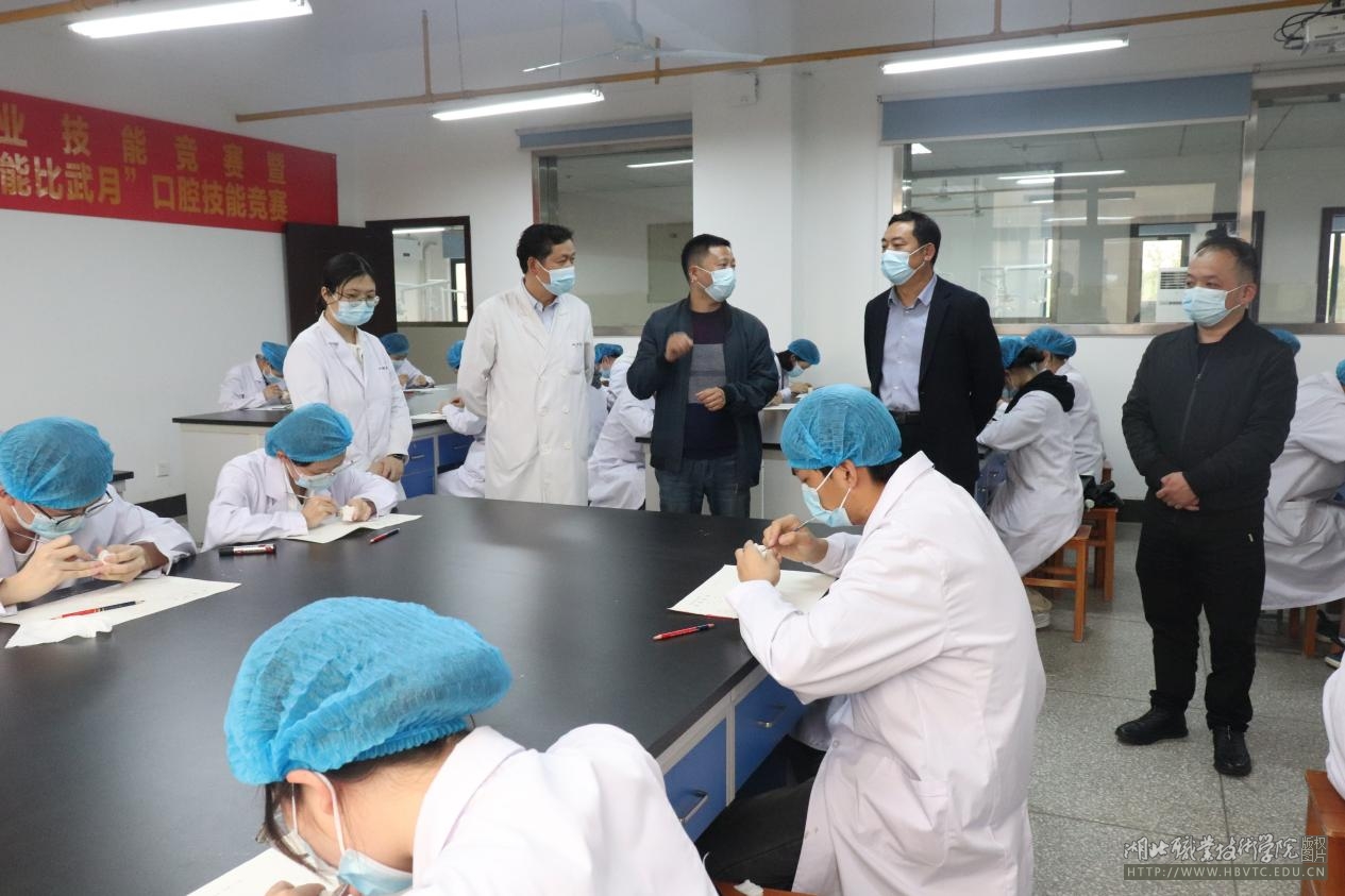 5月10日下午,孝感市2023年职业技能竞赛暨湖北职业技术学院2023年度“师生技能比武月”口腔技能竞赛在仁和楼四楼口腔医学实训中心举行,学校副校长胡昌杰带领教务处处长黄享苟、副处长龚洪浪等一行到口腔医学实训中心指导师生技能比武工作。口腔医学院院长何伟、党总支书记孙国运等同志参加,口腔临床教研室全体专任教师担任此次竞赛赛项评委。
