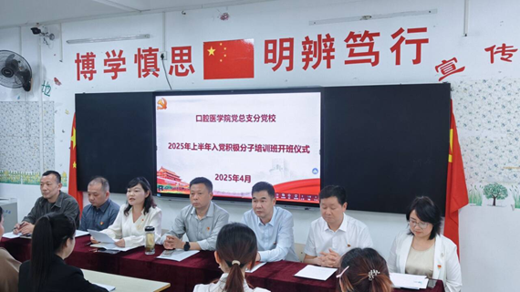 为深入学习贯彻习近平新时代中国特色社会主义思想和党的二十届三中全会精神,进一步加强入党积极分子的教育和培养,口腔医学院分党校2025年上半年入党积极分子培训开班典礼4月12日在德艺楼301室如期举行。口腔医学院全体班子成员、教师代表以及入党积极分子,孝感市委教育工委组织推荐了湖北孝感高级中学、孝感航天中学、孝感市工业学校、孝感生物工程学校、孝感市高级技工学校、奥美高级中学、菁华高级中学、孝感创兴中等职业学校14名骨干教师也参加了本次开班典礼和培训。