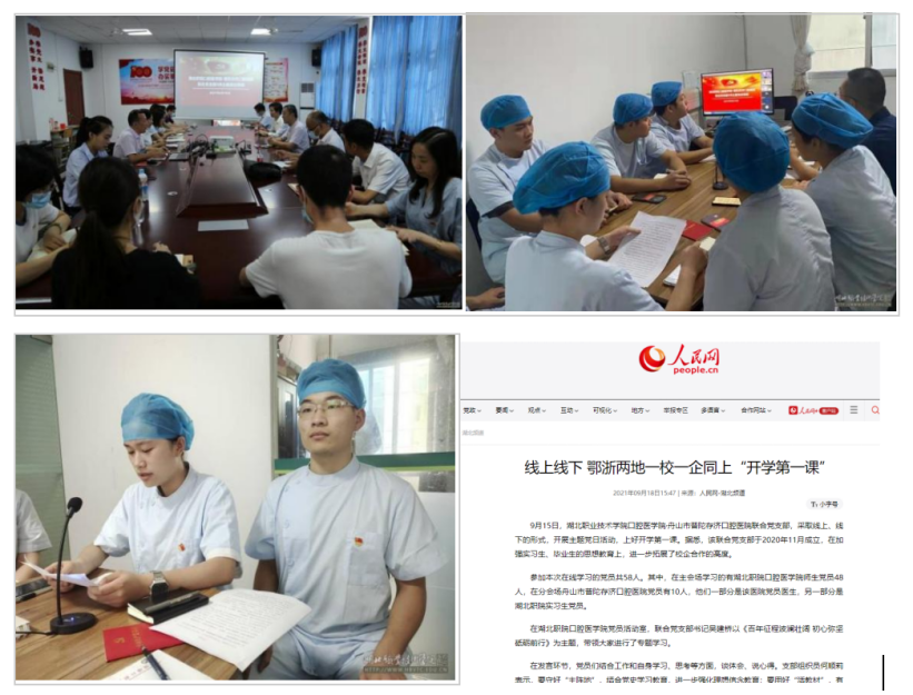 为落实学校党建工作强基培优工程,积极探索新时代基层党建工作新模式,充分发挥校企合作平台优势,口腔医学院与浙江省舟山市普陀存济口腔医院于2020年11月成立了联合党支部,旨在通过联合党支部平台开展实习生思想政治教育,深化校企教育教学、实习实训和学生就业等合作,以党建创新夯实党的基层组织建设,实现管理创新、合作共赢的目标。