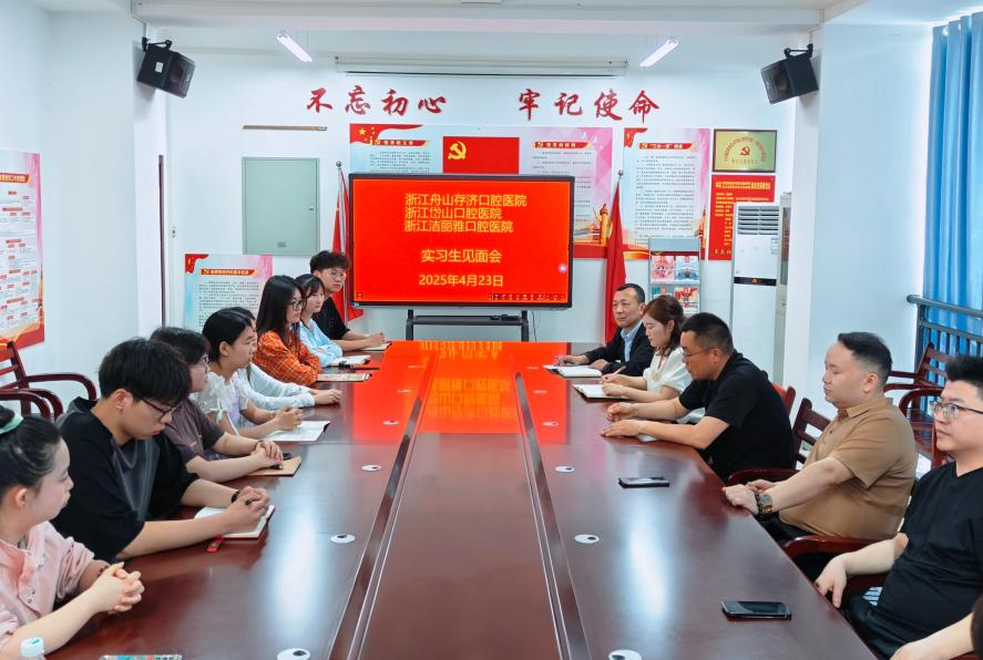 为促进产教融合,深化校企合作,4月22日口腔医学院与浙江舟山存济口腔医院开展4月份支部主题党日活动,完成学习内容后,存济口腔医院周伟忠书记就2022级实习生在他们医院实习和生活的情况做了汇报,并就下一步如何进行实习生中入党积极分子的培养、预备党员的后续培养与口腔医学院交换了意见。24日下午,周伟忠书记一行人与即将7月份到医院实习的23级实习生举行了见面会,他们就学生关心的问题逐一进行了解答。