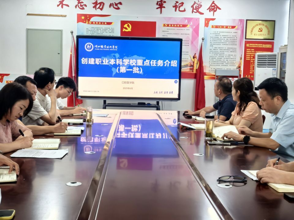 会上,副院长肖严详细介绍了创建职业本科学校重点任务(第一批),内容涵盖师资队伍建设、科研、社会服务、土地建筑面积、仪器设备、图书等多个关键方面。其中,师资队伍建设作为重点内容被深入解读,肖严从师资数量、结构优化、能力提升等维度展开具体阐述,明确了现阶段的目标与举措。