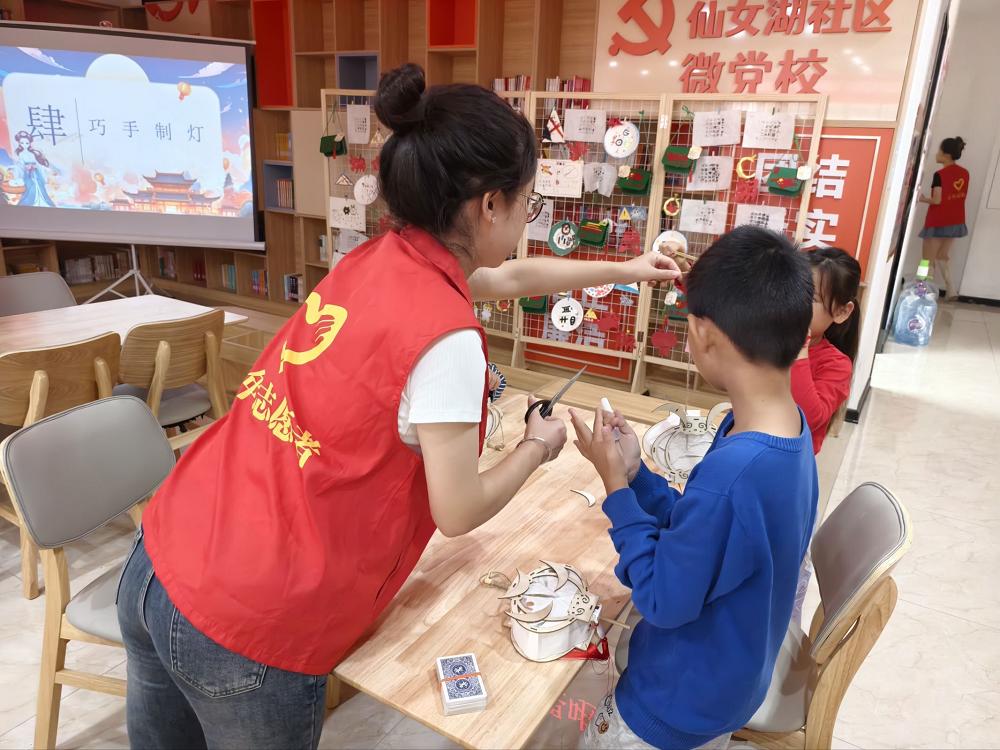 为庆贺国庆、中秋双节,传承传统文化、厚植爱国情怀,9月27日,口腔医学院爱心口腔志愿服务队再次走进仙女湖社区,开展以“巧手制灯,共庆双节”为主题的“周末课堂”志愿服务活动。活动将爱国教育与手工体验相结合,为社区小朋友们打造了一段充满欢笑与温情的时光。