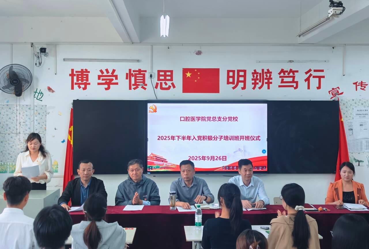 9月26日下午,口腔医学院分党校在东区德艺楼301教室举行2025年下半年入党积极分子培训班开班仪式,学院党总支和学工党支部全体成员出席仪式,仪式由党总支组织委员、学工党支部书记张玮同志主持。