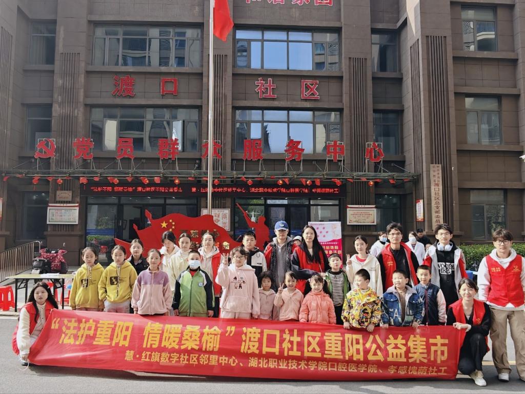 秋阳暖照,梧桐叶飘。10月26日,恰逢重阳节之际,渡口社区广场格外热闹——一场以“情暖重阳,公益惠民”为主题的重阳节公益集市在此开展。口腔医学院“星光益行”志愿服务队不仅带着专业器械与暖心关怀,带来口腔义诊服务,还积极参与集市中的普法宣传、便民理发、爱心磨刀、亲子烹饪体验等活动,用多元服务为社区居民送上节日祝福,志愿者们忙碌的青春身影,成为秋日里一道充满正能量的风景线。