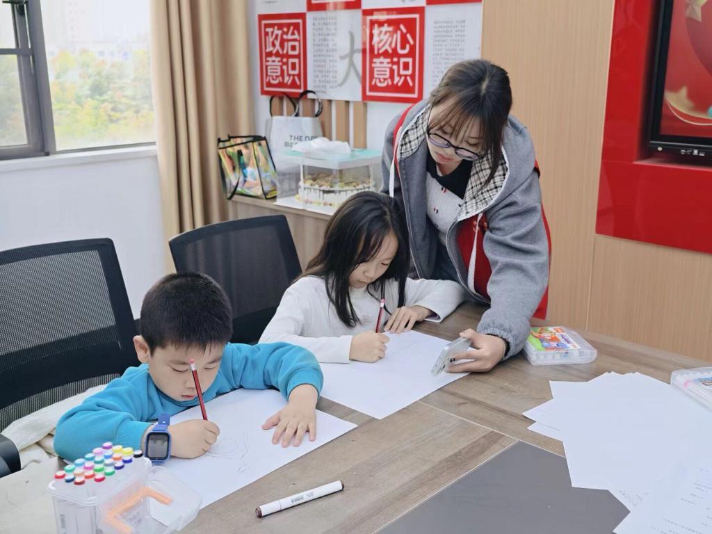 最期待的绘画环节来啦!孩子们化身“小小法治宣传员”,“爱心口腔”志愿者们提前为每个孩子分发五彩画笔、画纸,还特意准备了印有牙齿卡通图案的模板,鼓励大家把“法治守护”与“健康成长”结合起来创作。志愿者们穿梭在孩子中间,有的帮低龄孩子扶稳画笔,有的引导稍大的孩子把“公平的天平”“庄严的国旗”与“健康的牙齿”画在一起,将抽象的法治精神与具象的健康需求融入画作,让每一幅作品都成为“法治+健康”的创意表达。