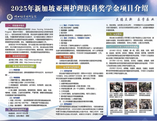 新加坡护理医科奖学金项目是中新两国政府自1993年起推动的重要教育合作计划。入选学生不仅可享受优质的国际化教育资源,毕业后还可获得在新加坡医疗机构就业的机会,实现跨境职业发展。湖北职业技术学院长期参与该项目,积累了丰富的学生培养与输送经验。