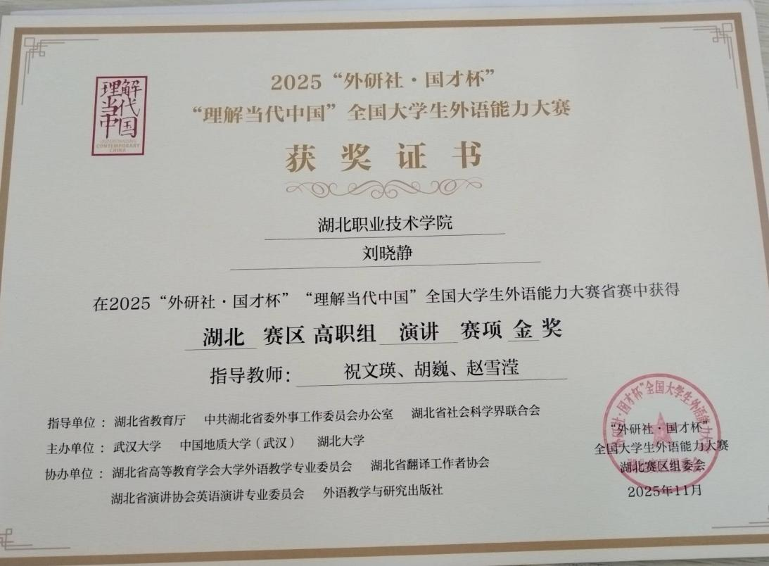 课外,她主动参与专业技能大赛培训,投身英语竞赛。英语学习中曾遇表达生硬、话题积累不足及临场紧张的难题,她坚持“输入+输出”双向积累:每日精读外刊积累话题素材与高级表达,跟读BBC新闻打磨语音语调;针对竞赛分类突破,演讲比赛反复录制视频纠正肢体语言,通过模拟答辩熟悉流程缓解紧张,短视频比赛注重叙事逻辑与画面契合,拆解历年获奖作品优化表达,最终在全国大学生英语竞赛、外研社短视频大赛中获奖,并斩获外研社演讲比赛金奖。此外,她利用周末参与医院志愿活动,面对老年患者扫码操作困难、对就诊流程不熟悉的问题,耐心手把手指导操作、细致讲解就诊步骤,用贴心服务化解矛盾,为良好医疗环境添砖加瓦,在多维实践中展现了新时代大学生全面发展的青春风采。