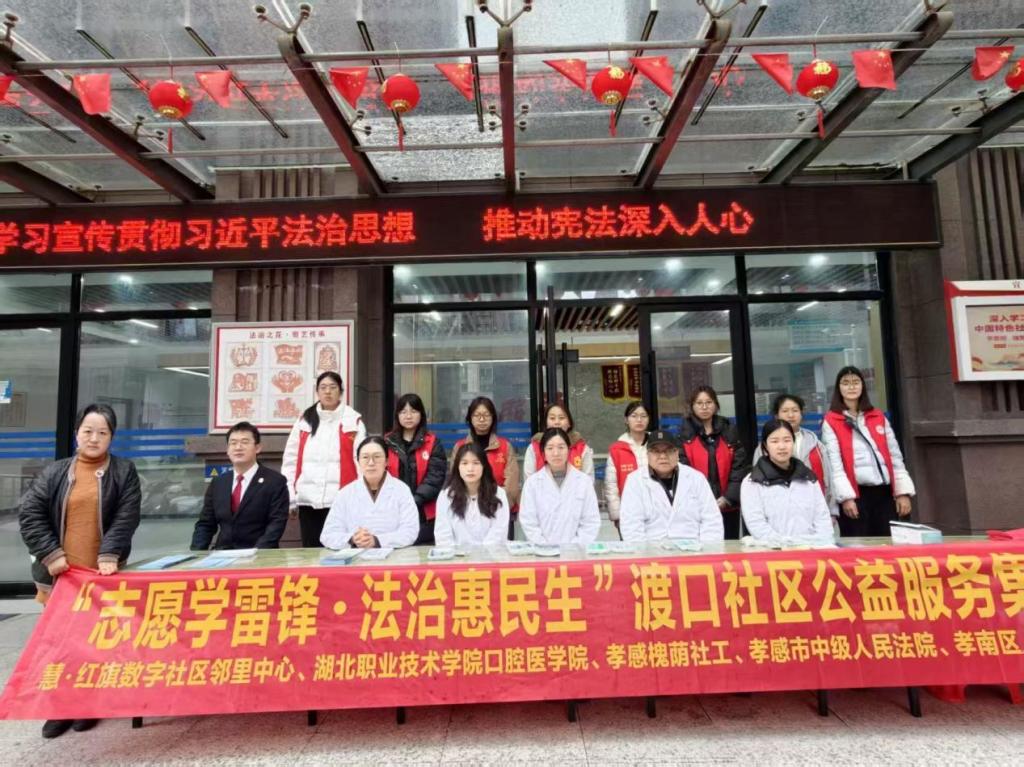 三月春风暖人心,雷锋精神永传承。在3月20日,口腔医学院联合渡口社区、法院等单位,共同开展“志愿学雷锋·法治惠民生”主题志愿服务活动,以专业服务传递温暖,用实际行动践行雷锋精神。