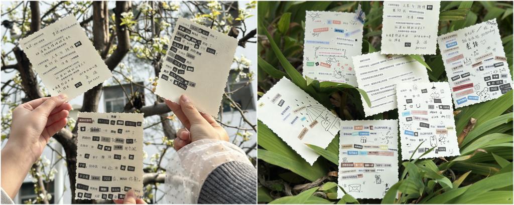创作环节中,同学们充分发挥想象力,用灵动的词语拼贴出专属自己的情感故事:有藏在心底的青涩心动,有陪伴左右的温暖日常,有治愈自我的成长感悟,有对生活的热忱期许。