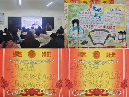 图为陈秦婵组织班级同学开展团课学习,以及评比奖状